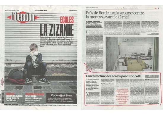 Parution de l'article dans Libération "L'architecture des écoles pose une colle".